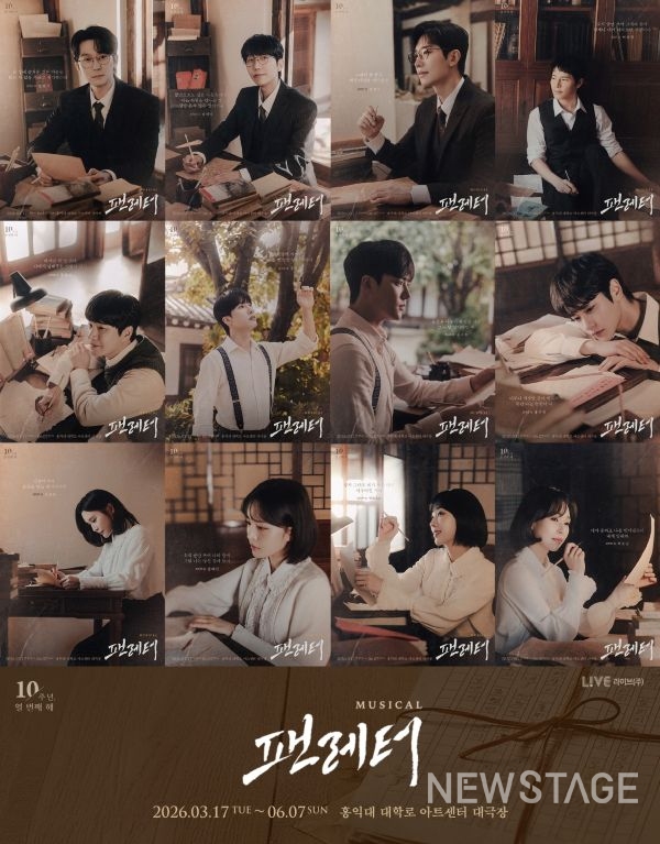 제작사 라이브 주식회사는 오는 3월 17일 서울 홍익대 대학로 아트센터 대극장에서 개막하는 뮤지컬 '팬레터' 10주년 기념 앵콜 공연의 캐릭터 포스터를 공개했다. 이번 시즌에는 기존 공연에 참여했던 출연진과 새롭게 합류한 배우들이 함께 무대에 오른다.