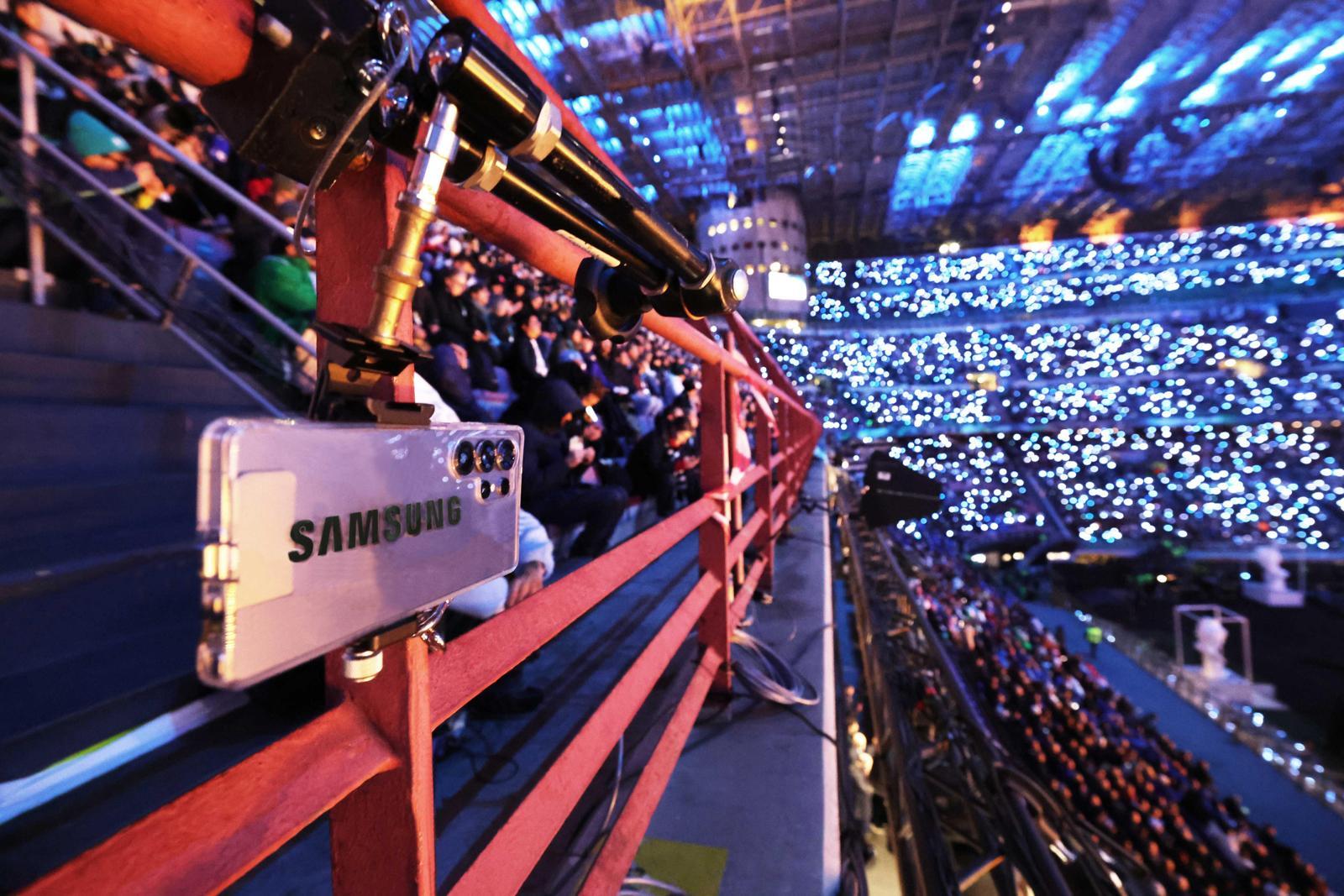 6일(현지 시간) 이탈리아 밀라노 산 시로 스타디움에서 열린 2026 밀라노-코르티나담페초 겨울올림픽 개회식을 삼성전자의 갤럭시 S25 울트라로 촬영해 생중계하고 있다. 삼성전자 제공 |