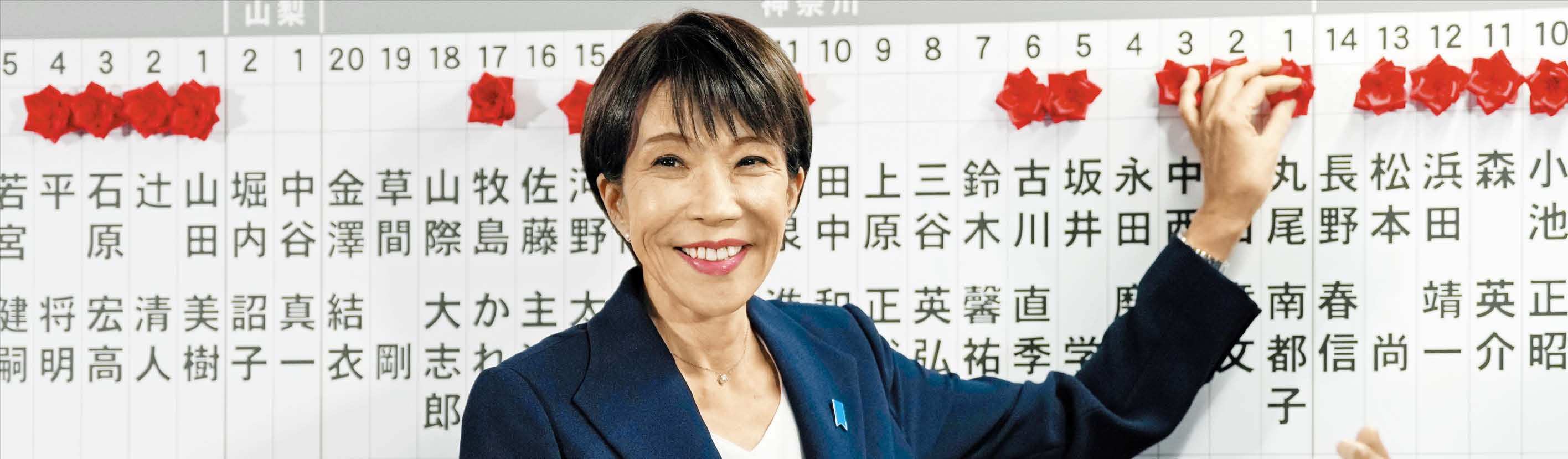 조기 총선 승부수 통했다 8일 오후 9시 42분쯤 도쿄 자민당 당사에 모습을 드러낸 다카이치 사나에 일본 총리가 당선이 확실시된 후보자 이름 위에 당선을 의미하는 붉은색 종이꽃을 붙이며 활짝 웃고 있다. 이날 자민당은 과반을 크게 웃도는 대승을 거뒀다. 반면 자민당 견제를 공언했던 야당 중도개혁연합은 의석을 대거 내주며 참패했다./ 게티이미지코리아 |