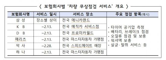 이에 금감원은 소비자가 알아두면 유용한 자동차보험 정보를 안내했다. 우선 출발 전에는 보험사가 제공하는 차량 무상점검 서비스를 활용하는 것이 도움이 된다고 조언했다. 타이어 공기압과 배터리, 브레이크, 오일류 등을 무료로 점검받을 수 있으며, 늦겨울 한파로 블랙아이스가 발생하기 쉬운 시기인 만큼 타이어 상태 점검이 중요하기 때문이다. 다만 보험사별로 서비스 기간과 장소, 점검 항목이 다른 만큼 사전에 확인할 필요가 있다고 덧붙였다.