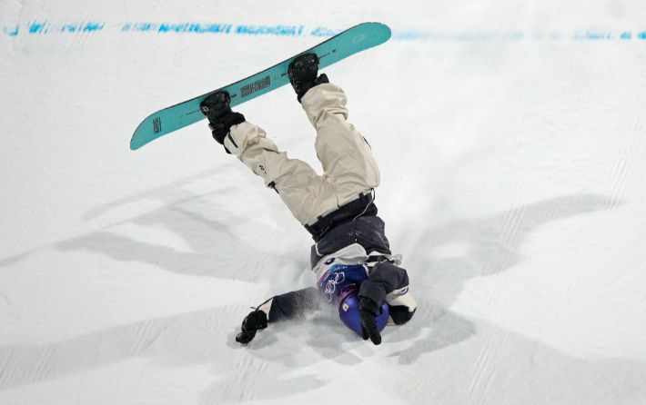 2026 동계올림픽 남자 스노보드 빅에어 경기 중 넘어진 오기와라 히로토(일본). 연합뉴스 |