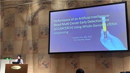 (서울=연합뉴스) 최현석 기자 = GC지놈은 지난 7일 일본 교토에서 열린 일본 액체생검 연구회 제10회 학술대회 세션에서 인공지능(AI) 기반 다중암 조기 스크리닝 검사 서비스 '아이캔서치(ai-CANCERCH)'의 성능 검증 결과를 발표했다고 9일 밝혔다.