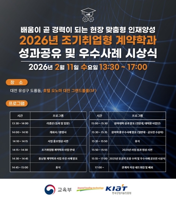 조기취업형 계약학과가 오는 11일 대전 호텔 오노마 대전에서 ‘성과공유 및 우수사례 시상식’을 개최한다.