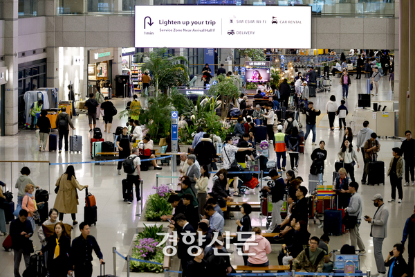 질병관리청이 설 연휴 여행·이동 시 감염병 예방수칙을 잘 지켜달라고 당부했다. 사진은 지난해 추석 연휴 마지막날 이용객들로 붐비는 인천국제공항 터미널의 모습이다. 문재원 기자 |