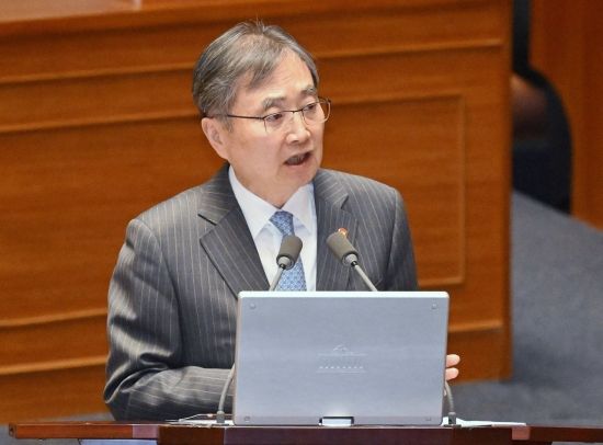 조현 외교부 장관이 9일 국회에서 열린 대정부질문(정치·외교·통일·안보 분야)에 참석해 윤후덕 더불어민주당 의원 질의에 답하고 있다.