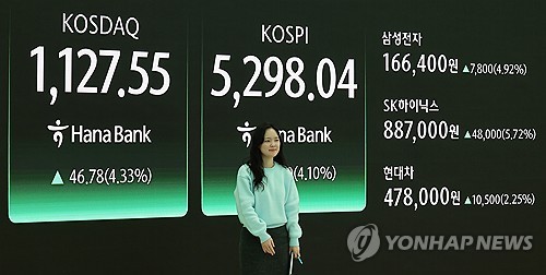 이날 코스피는 전장보다 208.90p(4.10%) 오른 5,298.04에 거래를 마감했다.