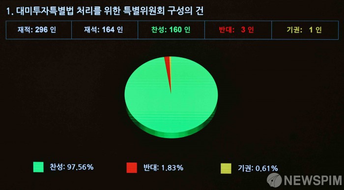 [서울=뉴스핌] 윤창빈 기자 = 9일 오후 서울 여의도 국회에서 열린 본회의에서 대미투자특별법 처리를 위한 특별위원회 구성의 건이 가결되고 있다. 2026.02.09 pangbin@newspim.com
