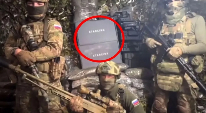 스타링크 단말기 앞에 서 있는 러시아 군인들. 이스트2웨스트뉴스 제공 |