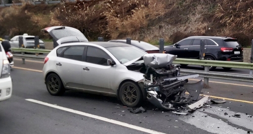 (제주=연합뉴스) 변지철 기자 = 제주 평화로에서 차량 4대가 연쇄 추돌하는 사고가 발생했다.