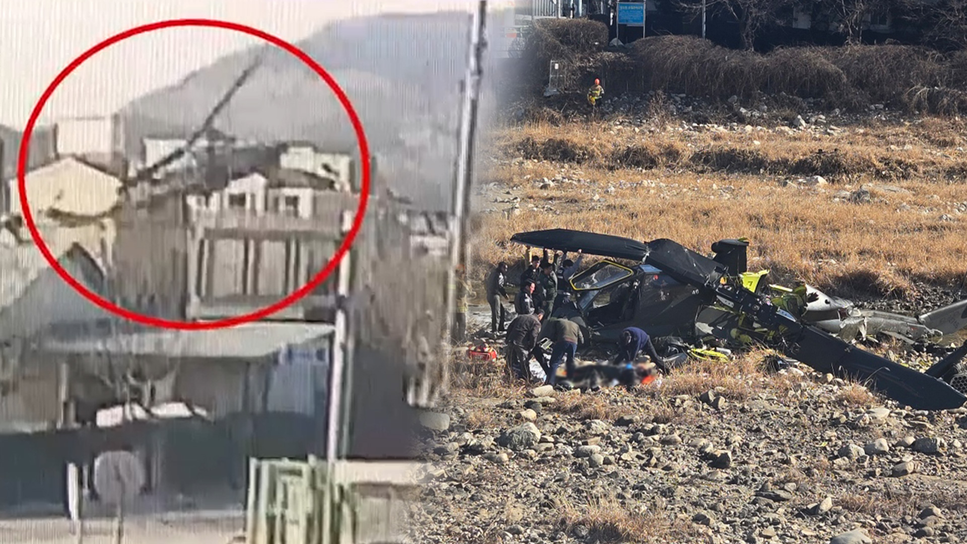연합뉴스TV가 확보한 CCTV 영상에는 사고 헬기가 수평 상태로 힘없이 추락하는 모습이 담겼습니다.