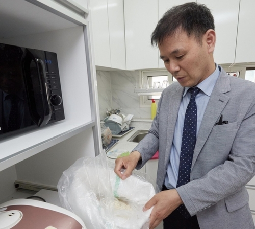 구매한 쌀을 무료 기숙사에 전달하는 김창완 교감 |