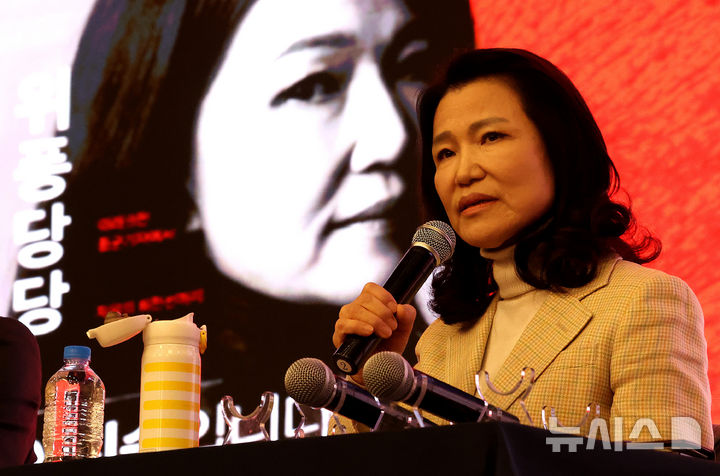 [대구=뉴시스] 이무열 기자 = 이진숙 전 방송통신위원장이 9일 대구 수성구 그랜드호텔에서 열린 ‘위풍당당 이진숙입니다’ 출판을 기념하는 북콘서트에서 발언하고 있다. 2026.02.09. lmy@newsis.com |