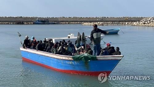 2023년 4월 리비아 해안경비대에 구조된 유럽행 이주민. 이 사진은 기사와 직접 관련 없음 [EPA 연합뉴스 자료사진 재판매 및 DB 금지] |
