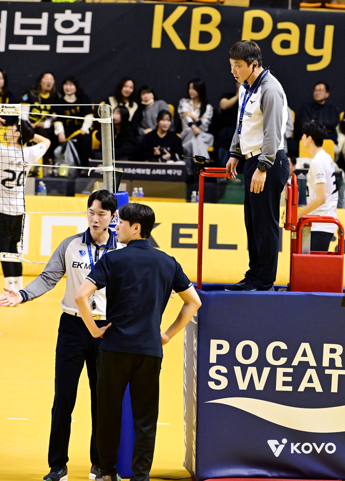 KB손해보험 선수들은 강하게 반발했다. 주장 황택의가 주심과 계속해서 얘기를 나눴다. 벤치에서도 하 감독 대행은 물론 코치진도 목소리를 높였다. 하지만 판정은 달라지지 않았다.