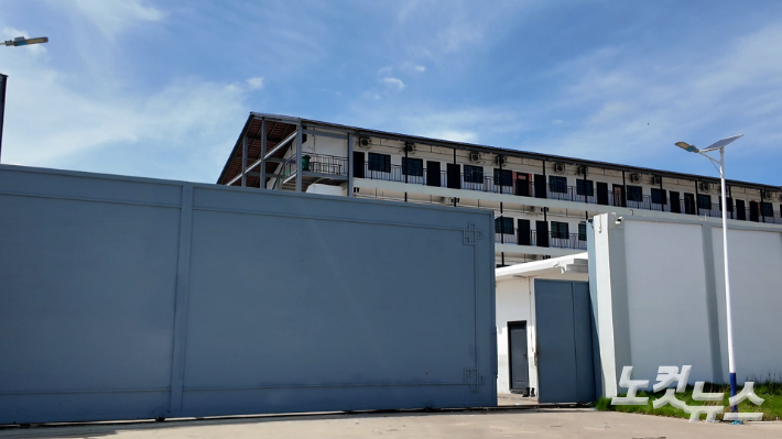 캄보디아에 위치한 한 대규모 범죄단지 외관. 남성경 기자 |