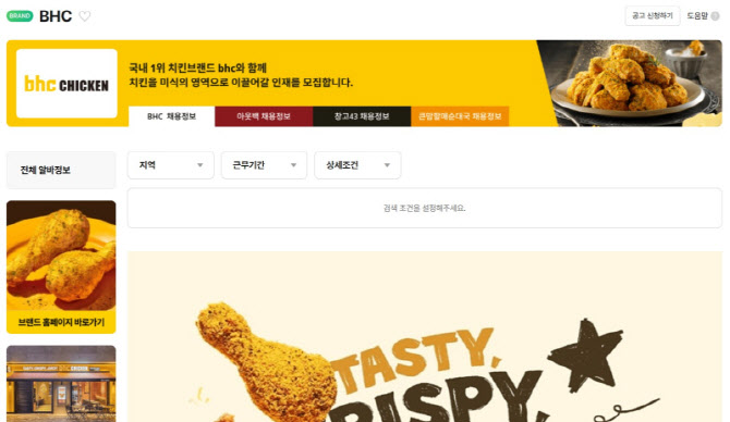 가맹점주들은 횟수 제한이나 비용 부담 없이 상단 노출 유료 공고를 무료로 등록할 수 있고, 구직자들은 거주지 인근 bhc 매장의 채용 정보를 한눈에 확인할 수 있어 구직 성사율 또한 크게 향상됐다. 실제 가맹점주들의 현장 반응도 뜨겁다는 게 bhc측의 설명이다.