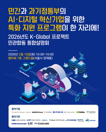 K-글로벌 프로젝트는 흩어져 있던 정부와 민간의 AI·디지털 분야 혁신기업 지원사업 및 프로그램을 하나로 통합한 플랫폼이다. 지난해 285개 참여사를 대상으로 조사한 결과 3분기까지 투자유치액이 전년 대비 63% 증가했다. 일자리수와 특허출원건수도 각각 3.1%, 4.7% 늘었다. 이에 과기정통부는 올해 △스케일업 △해외 진출 △디지털 자원 등 31개 사업에서 1441억원 규모로 프로젝트를 운영한다.