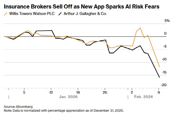 블룸버그 인텔리전스의 매튜 팔라졸라 보험 애널리스트는 “새로운 인슈리파이 도구와 앤스로픽의 AI 도구에 대한 우려가 제기되고 있다”고 분석했다.