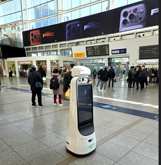 서울역에 투입된 로봇. 인공지능(AI)으로 혼잡도를 분석해 고객 분산을 유도한다. 코레일 |