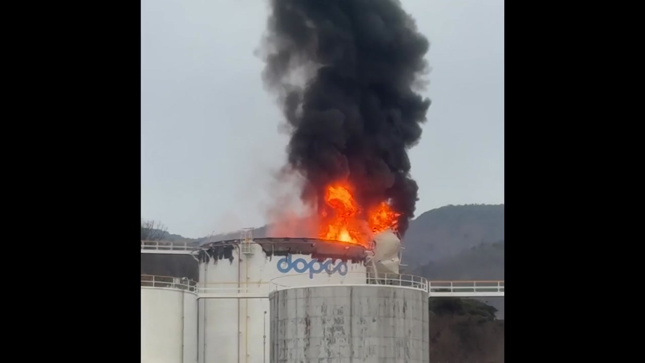 YTN에 접수된 제보 영상을 보면, 유류 탱크 여러 개 가운데 하나에 불이 붙었습니다.