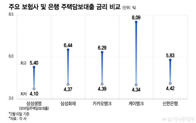 주요 보험사 및 은행 주택담보대출 금리 비교/그래픽=이지혜 |