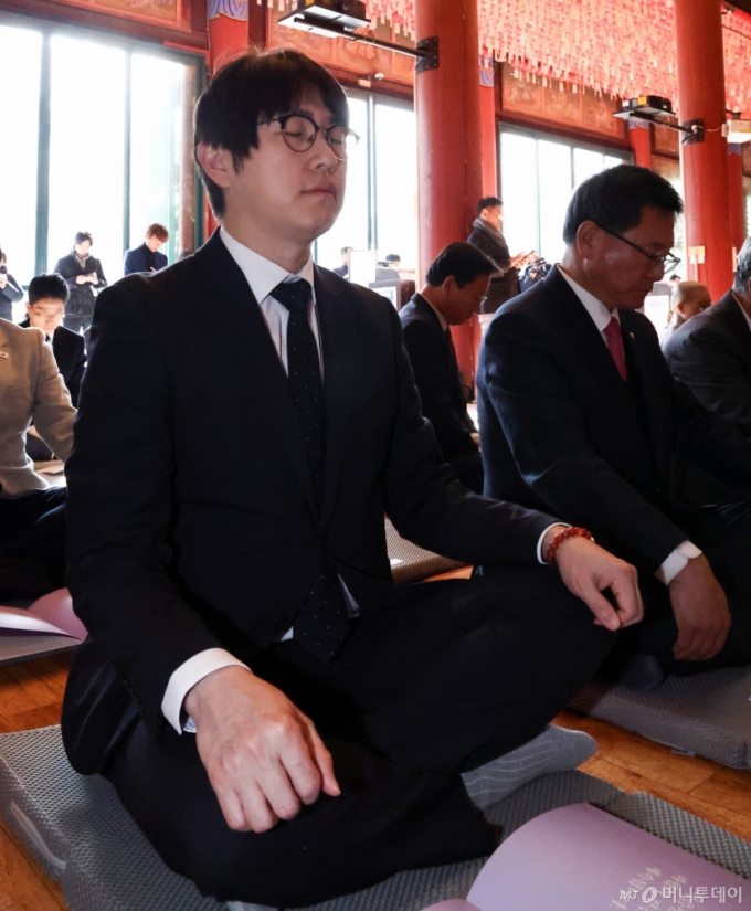 (서울=뉴스1) 최지환 기자 = 하정우 AI미래기획수석이 27일 오후 서울 종로구 조계사에서 열린 한국불교지도자 신년하례법회에서 선명상을 하고 있다. 2026.1.27/뉴스1 Copyright (C) 뉴스1. All rights reserved. 무단 전재 및 재배포, AI학습 이용 금지. /사진=(서울=뉴스1) 최지환 기자 |
