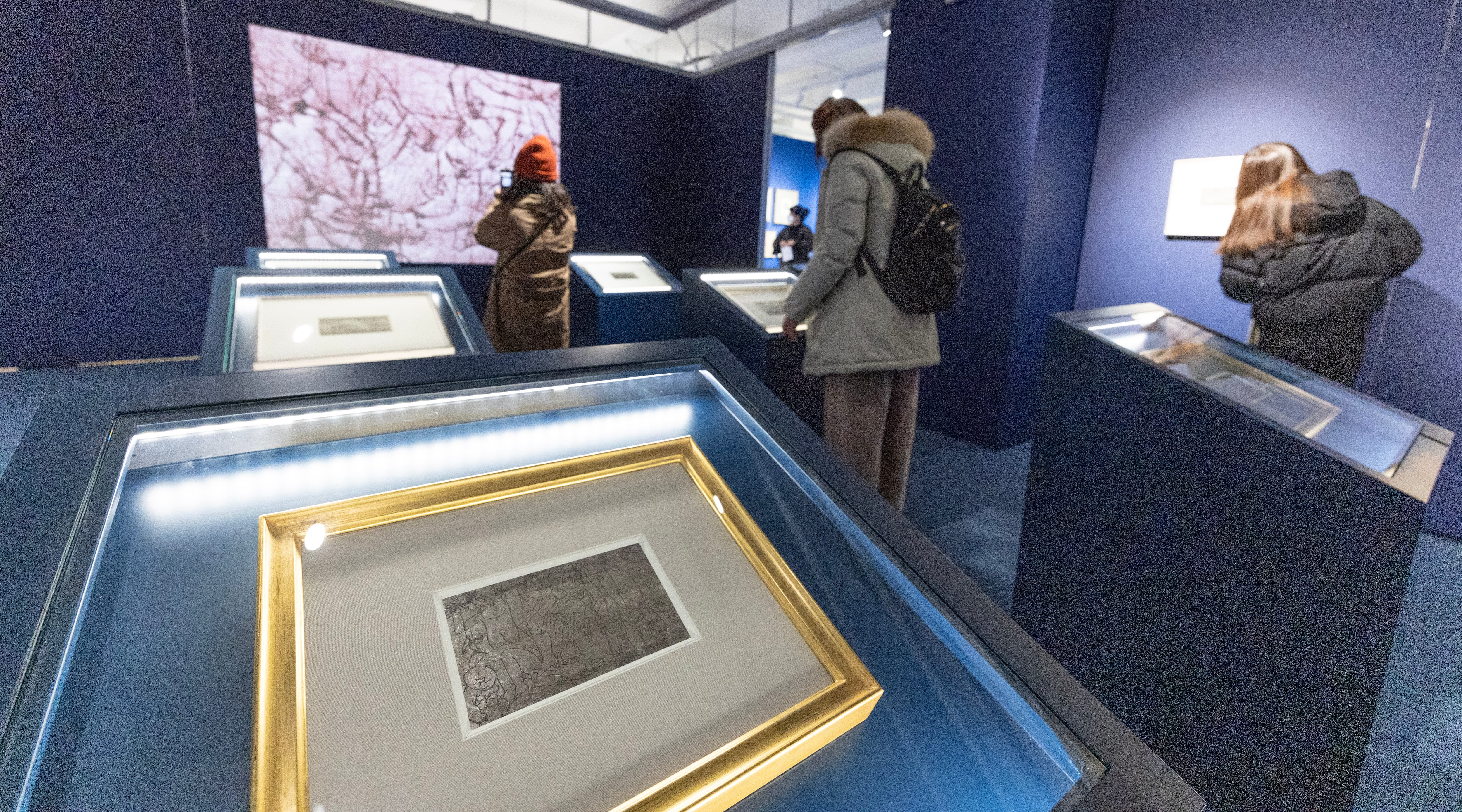 10일 오후 '쓰다 이중섭' 전시장에서 관람객들이 은지화 섹션을 살펴보고 있다./이태경 기자 |