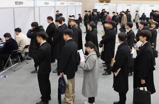 10일 부산 동구 부산항국제전시컨벤션센터에서 열린 '2026 해운선사 해기사 취업박람회'에서 구직자들이 면접을 보기 위해 줄지어 서 있다. 연합뉴스 |