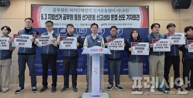 전국공무원노동조합 경북지역본부는 11일 포항시청 브리핑룸에서 기자회견을 열고, 6·3 지방선거를 앞두고 ‘공무원 부당 동원 선거운동 신고센터’를 설치·운영한다고 밝혔다.