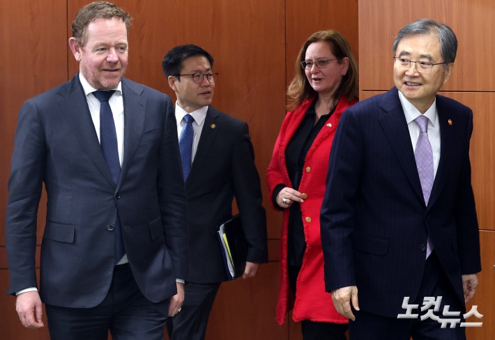 조현 외교부 장관과 다비드 반 베일 네덜란드 외교장관이 11일 서울 종로구 외교부청사에서 열린 '한-네덜란드 외교산업 2+2 회의'에 참석하고 있다.