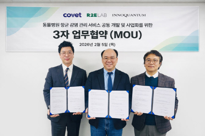 (좌측부터) 이성기 이노퀀텀 대표, 오이세 코벳 대표, 김창주 알투이랩 대표. 3사 대표가 차세대 항균 코팅 및 스마트 위생관리 솔루션 공동 개발과 사업 협력을 위한 업무협약(MOU)을 체결했다. |