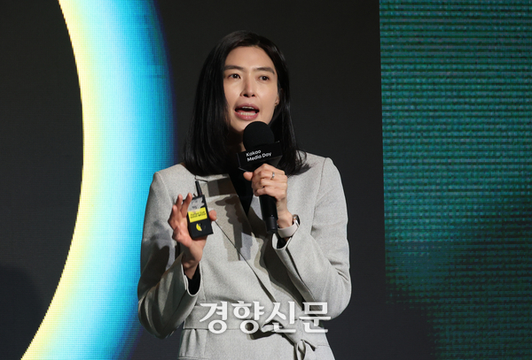 정신아 카카오 대표가 지난해 2월 서울 중구 더 플라자 호텔에서 열린 기자간담회에서 발언하고 있다. 권도현 기자 |