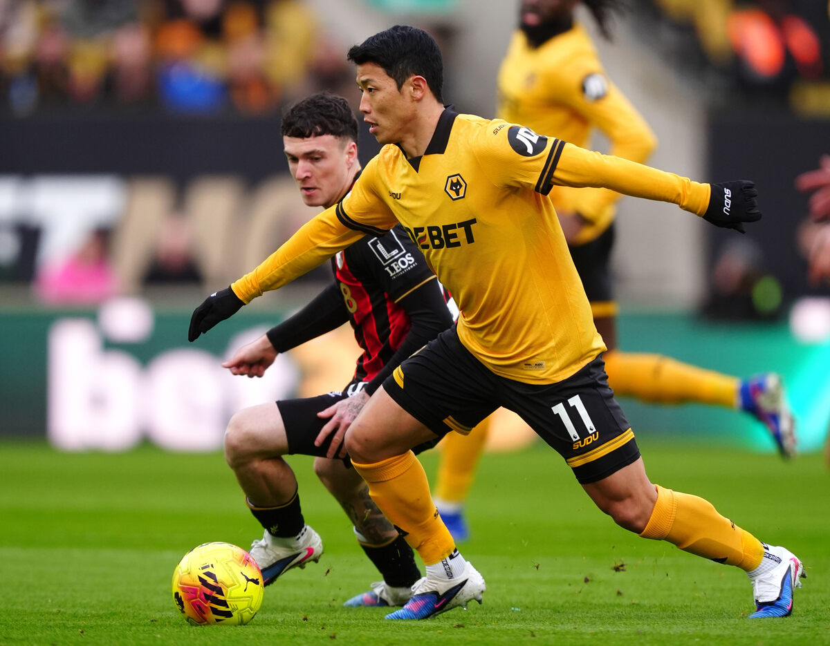 울버햄튼 황희찬이 지난 1일 본머스와의 2025∼2026 잉글랜드 EPL 24라운드에서 볼을 다투고 있다. |