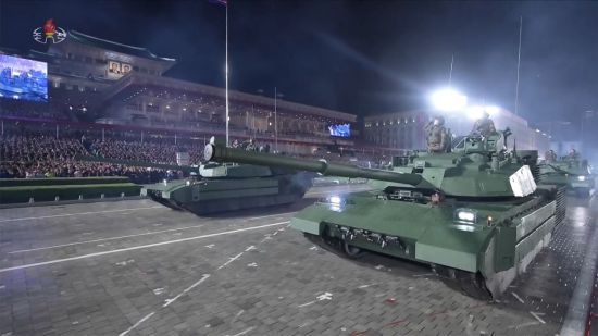 북한 노동당 창건 80주년 경축 열병식에 등장한 주력 전차. 사진=조선중앙TV 화면 연합뉴스 |