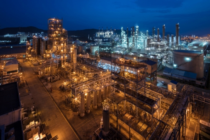 대림산업 여수 석유화학단지 고밀도 폴리에틸렌 공장 야경 |
