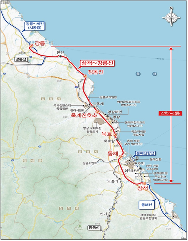 동해선 삼척-강릉 철도 고속화 사업은 해당 구간의 구불구불한 선형을 바로잡고, 관련 시설 개량 등을 통해 열차의 250㎞/h 고속 운행이 가능하도록 하는 사업이다. 총 사업비는 1조1507억원이다.