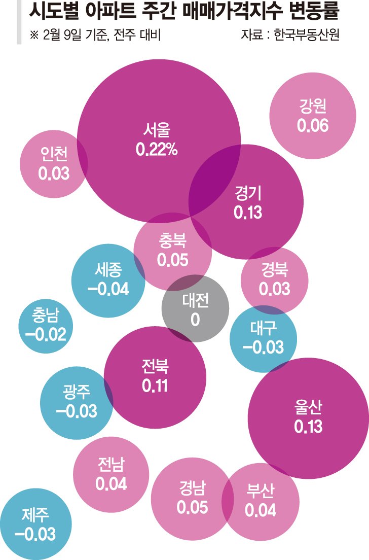 12일 한국부동산원이 발표한 '2월 2주(9일 기준) 주간 아파트가격 동향'에 따르면 서울 아파트 매매가격은 전주 대비 0.22% 상승했다. 상승 흐름은 유지됐지만 지난주(0.27%)보다 오름폭은 축소됐다.