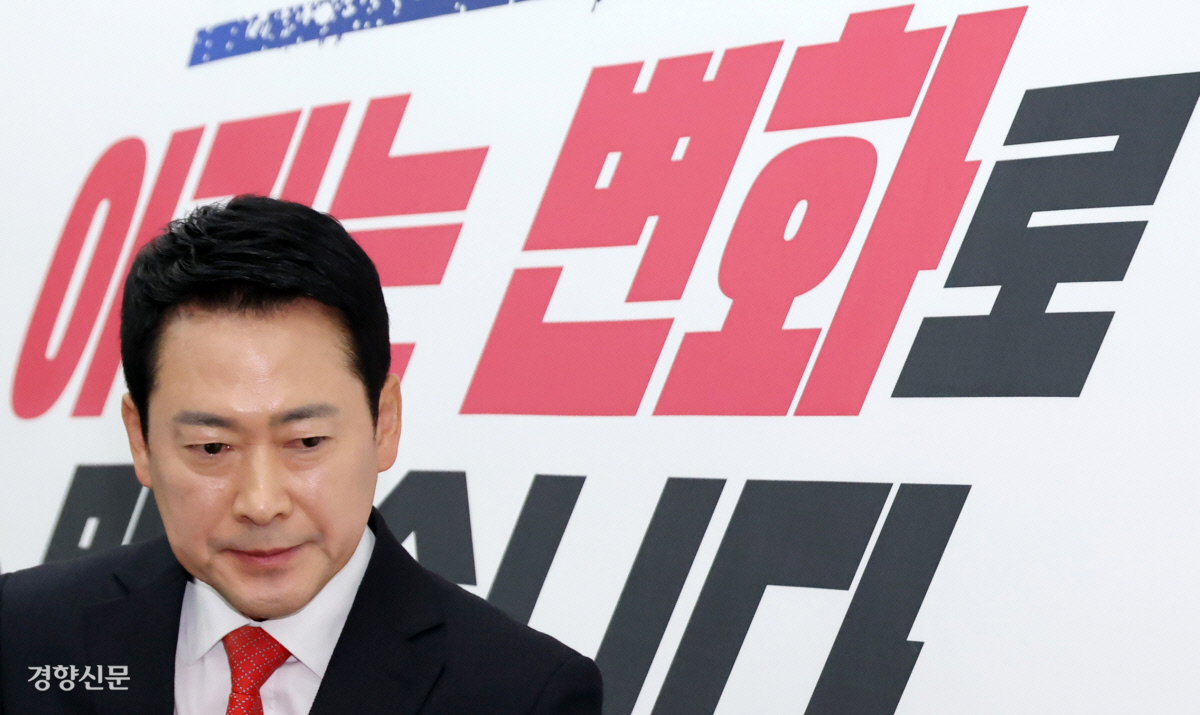 굳은 표정으로 퇴장 장동혁 국민의힘 대표가 12일 국회에서 기자간담회를 열고 이재명 대통령과 함께하려던 오찬에 불참하는 이유를 설명한 뒤 퇴장하고 있다. 박민규 선임기자 parkyu@kyunghyang.com |