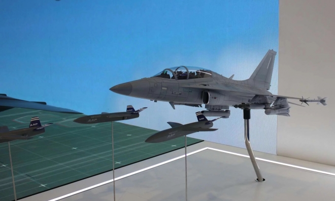 전시장에는 10분의 1 크기 축소 모형의 FA-50이 완전 무장 상태로 공중 비행 자세를 취한 채 배치됐다. 그 아래에는 AAP 무인기 여러 대가 호위 편대처럼 배열됐다. 이 구성은 유인 전투기가 센서와 지휘, 무장 통제를 맡고 무인기가 정찰과 전자전, 기만, 타격 지원을 수행하는 미래 공중전 구상을 시각적으로 보여준다. 이런 방식은 유인기와 무인기가 임무를 분담하는 ‘유무인 협동(MUM-T·Manned-Unmanned Teaming)’ 전투 개념으로 불린다.