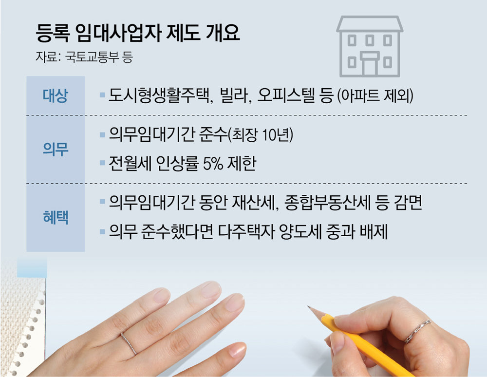 “말 그대로 집주인이 임대사업자로서 자신의 집을 정부에 등록하고 세입자 보호를 위한 여러 의무를 지키는 대신 다양한 혜택을 받는 제도입니다. 세입자의 주거 안정을 위해 도입됐죠. 기존에도 있었던 제도이지만 2017년 문재인 정부 당시 등록 임대주택에 대한 세제 혜택을 대폭 늘리면서 본격적으로 자리 잡았습니다.