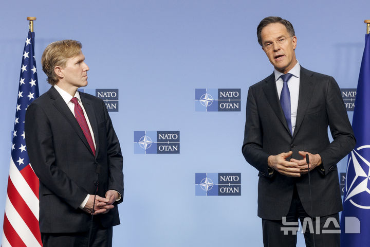 [서울=뉴시스] 이재우 기자 = 마르크 뤼터 북대서양조약기구(NATO·나토) 사무총장은 12일(현지시간) 나토 국방장관 회의에서 회원국의 국방 태세 강화를 촉구했다. 엘브리지 콜비 미국 국방부 정책 담당 차관은 피트 헤그세스 장관 대신 참석해 '우리는 종속 관계가 아닌 파트너십을 원한다'며 유럽의 역할 확대를 요구했다.