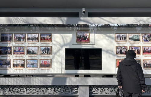 13일 연합뉴스가 베이징 차오양구 소재 주중 북한대사관 정문 옆 게시판을 확인한 결과 대사관 측은 중앙 메인 사진 1장과 양쪽에 각각 12장씩 총 25장의 사진을 새롭게 게시했다.
