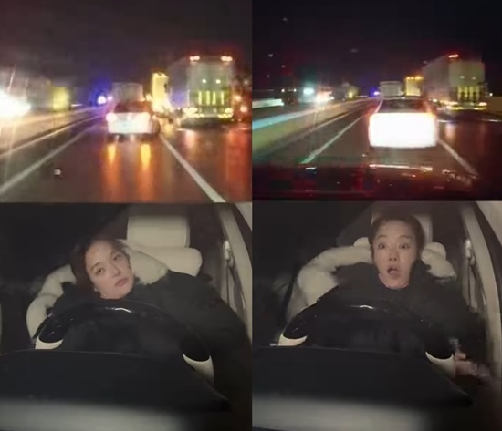 공개된 영상에는 황보라가 늦은 밤 운전을 하던 중 갑작스러운 충격이 전해진듯한 상황에 놀라는 표정과 비명을 지르며 운전대에 얼굴을 파묻는 모습이 담겨 있다.