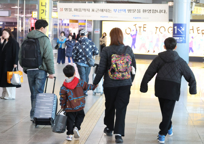 설 명절 연휴를 이틀 앞둔 12일 오후 부산 동구 부산역에 설 명절 귀성길로 부산을 찾는 방문객들을 환영하는 펼침막이 내걸려 있다.(사진=연합뉴스) |