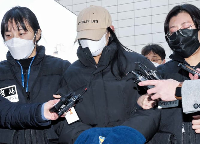 서울 강북구 모텔에서 남성 2명을 잇따라 숨지게 한 혐의를 받는 20대 여성(가운데)이 지난 12일 영장실질심사를 받기 위해 서울북부지법에 출석하고 있다. /연합뉴스 |