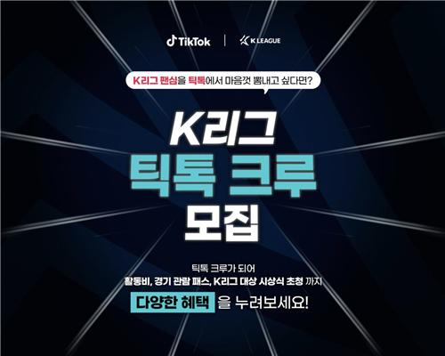 (서울=연합뉴스) 오명언 기자 = 한국프로축구연맹이 글로벌 콘텐츠 플랫폼 틱톡과 함께 '2026 K리그 틱톡 크루'를 모집한다고 13일 밝혔다.