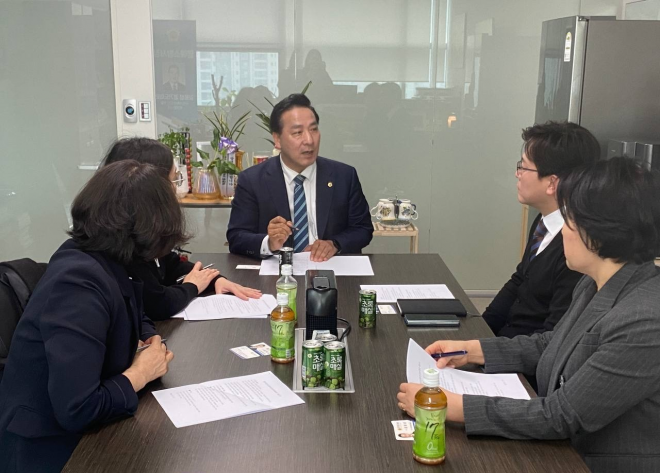 김용성 의원이 12일 한국산모신생아건강관리협회 관계자들과 정담회를 갖고 사업 지속 가능성 문제와 지원 기간 확대 등을 논의하고 있다.(사진=경기도의회) |