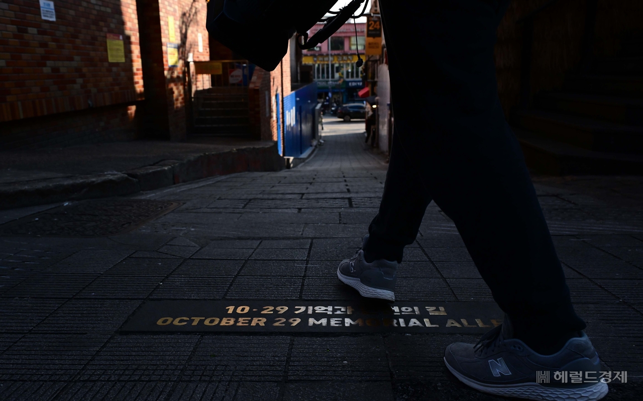 10.29 이태원 참사 3주기를 하루 앞둔 지난해 10월 28일 서울 용산구 이태원역 1번 출구 인근 참사 현장에 시민들이 지나고 있다. 이상섭 기자 |