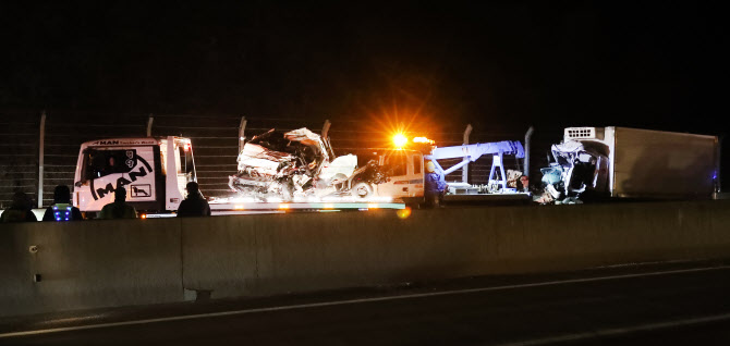 14일 오전 1시 23분께 경북 경산시 남천면 대구부산고속도로에서 대구 방향으로 달리던 25t 트레일러 차량이 갓길에 멈춘 승용차를 피하려다 중앙분리대를 들아받은 뒤 반대 차선으로 넘어가는 사고가 발생했다. 반대편에서 주행하던 SUV는 트레일러를 피하려다 추가 사고가 발생했다.