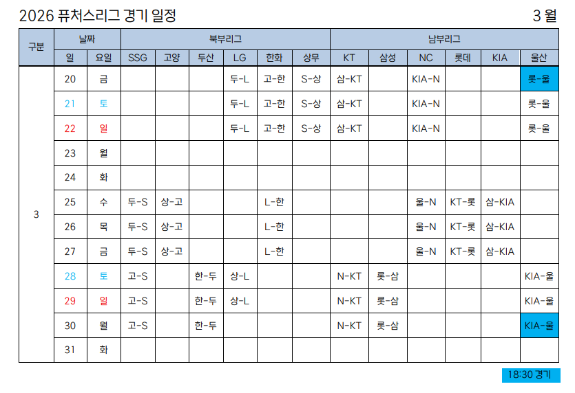 2026 KBO 퓨처스리그가 3월 20일 개막한다.